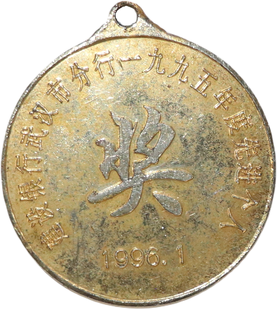 这枚1995年度建设银行武汉市分行先进个人奖章,颁发于1996年1月,诞生于中国金融业关键转型期。1995年正值专业银行向商业银行加速转变阶段,建行作为国家金融支柱,正剥离政策性业务、强化商业化经营。武汉分行作为区域核心机构,承担基建投资管理等重任。奖章独特之处在于其正面沿用1986年至1996年的旧版行徽(以“古钱币+双线结”象征“资金积累为建设之本”),恰逢1996年3月建行更名启用新行徽前夕,成为新旧标识过渡的重要实物见证。